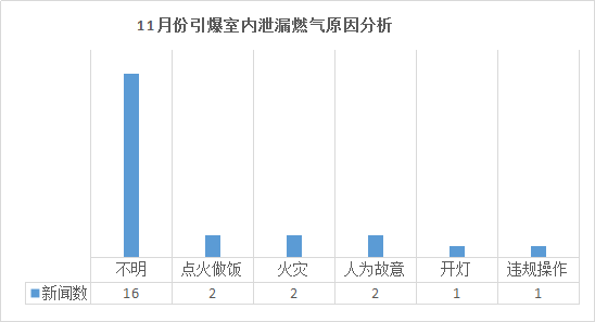24起燃气事故新闻中,只有3起明确报道泄漏原因,有2起因为人为故意,恶意破坏引发泄漏;1起为未关闭阀门,灶具老化内漏。